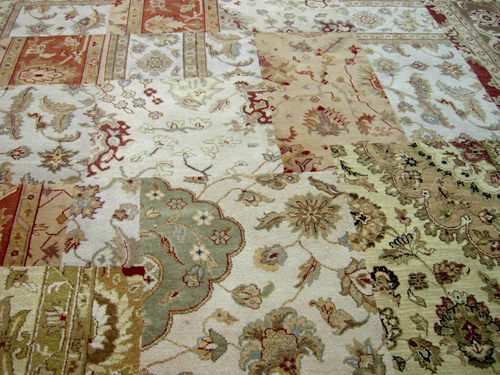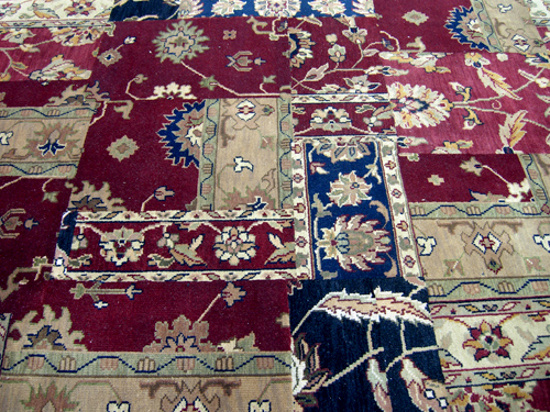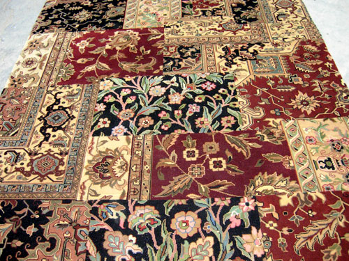 Hand-knotted Rugs with the best quality are manufactured in India, in different patterns like Persian knots, Into-Tibetan knots, Turkish knots, also covering Patch style carpets. All these are covered under the handmade rug.